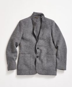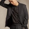 This jacket is an unstructured, modern cut that is fitted in the chest and sleeves. Model is 6’2″ wearing size 38R.