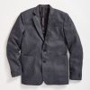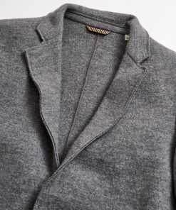 This jacket is an unstructured, modern cut that is fitted in the chest and sleeves. Model is 6’2″ wearing size 38R.