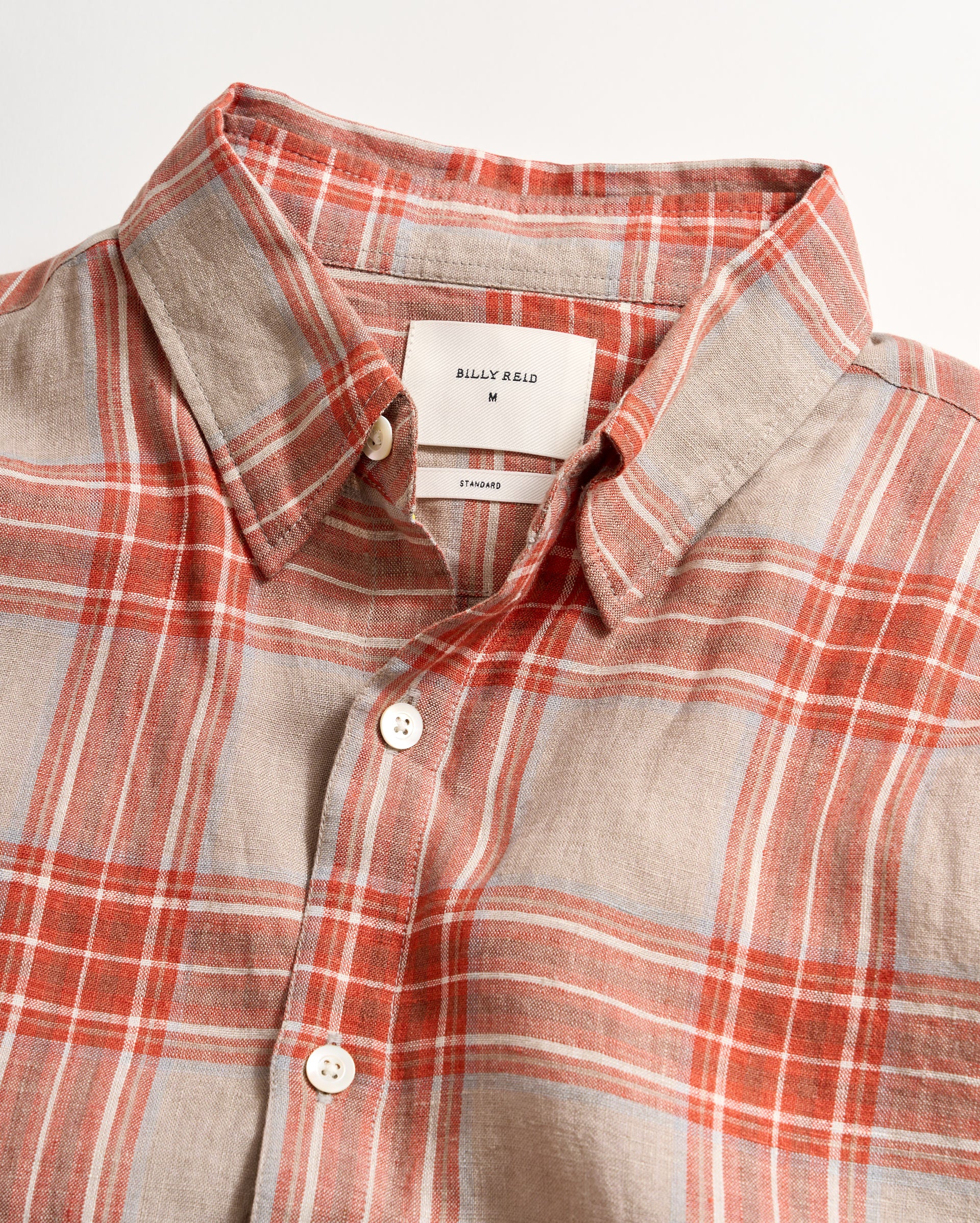 Billy Reid Men’s Bold Plaid Linen Wilson Shirt | Brick