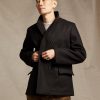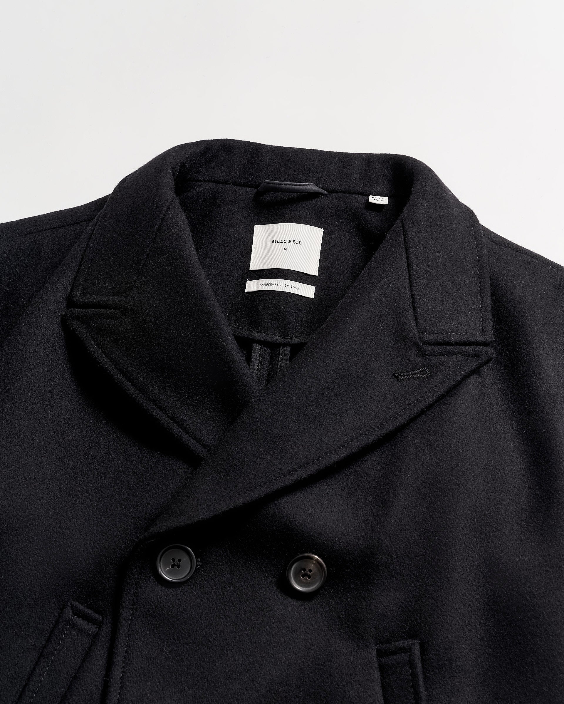 Our first version of the Bond Peacoat dates back two decades. Originally named after our Bond Street store in New York, Daniel Craig famously wore it in the James Bond movie Skyfall. The response to that moment made the peacoat one of our most beloved pieces. Our iconic Bond is made in Italy from warm, sturdy Melton wool and thoughtfully finished with bound seams. This mark of craftsmanship eliminates the need for a liner, reducing bulk and ensuring comfort. The piece is finished with our signature heirloom ribbon stripe embossed on luxe calfskin leather under the collar, handwarmer chest pockets, and genuine horn buttons. It remains an enduring take on a menswear classic.