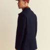 Our first version of the Bond Peacoat dates back two decades. Originally named after our Bond Street store in New York, Daniel Craig famously wore it in the James Bond movie Skyfall. The response to that moment made the peacoat one of our most beloved pieces. Our iconic Bond is made in Italy from warm, sturdy Melton wool and thoughtfully finished with bound seams. This mark of craftsmanship eliminates the need for a liner, reducing bulk and ensuring comfort. The piece is finished with our signature heirloom ribbon stripe embossed on luxe calfskin leather under the collar, handwarmer chest pockets, and genuine horn buttons. It remains an enduring take on a menswear classic.