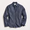 This classic shirt silhouette is one that we’re bringing back in new fabrics and colorways. It features two hidden button-down collars, a split straight bias yoke, barrel cuffs, and a tonal thread throughout the body. It has a classic looking feel for a button down in a standard fit that looks great on its own, worn open, or layered under a blazer. We’ve finished the shirt with 18 line buttons and our signature Billy Reid heritage stripe at the front placket.