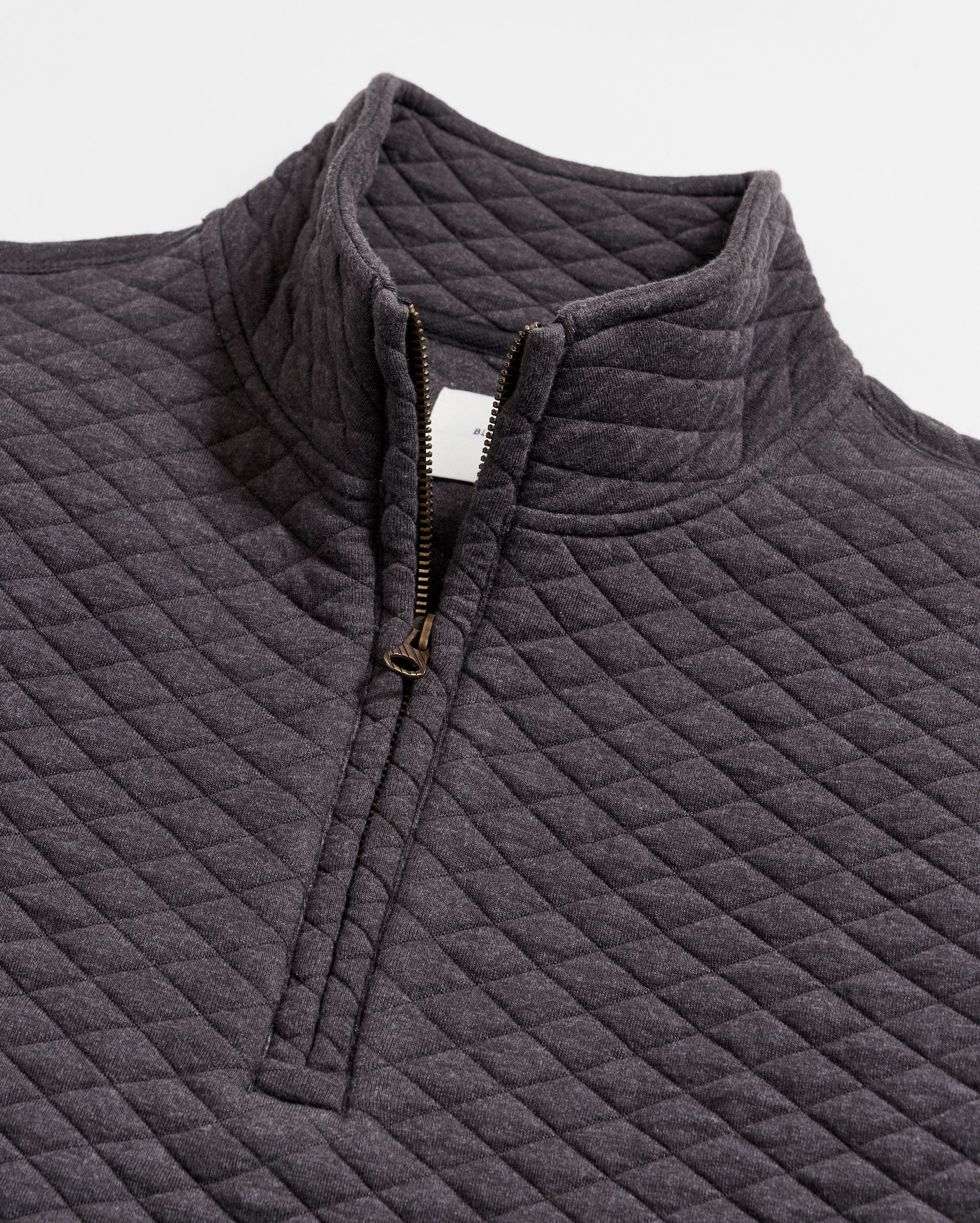 A new iteration of our fan-favorite Diamond Quilt Shawl, this effortlessly versatile layering piece is crafted from a lightweight cotton blend. It features a beautiful quilted fabric, rib on the cuffs and waist, and an antique brass zipper with our signature heirloom ribbon stripe embossed on the pull.