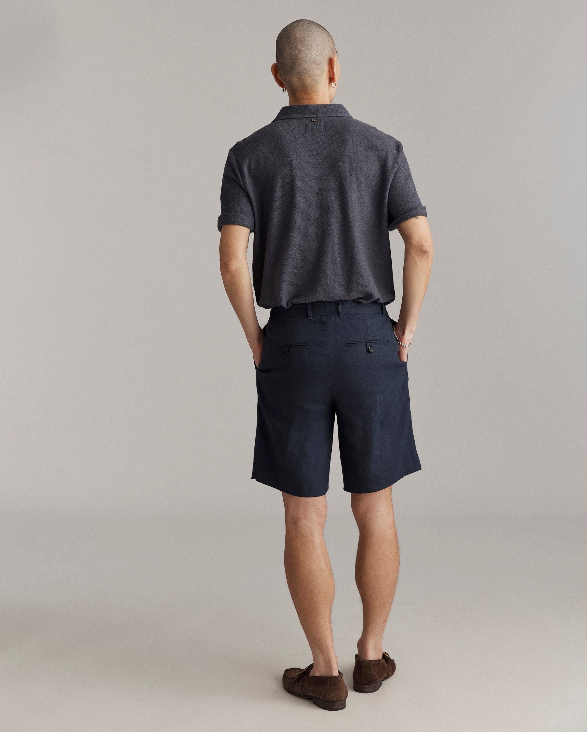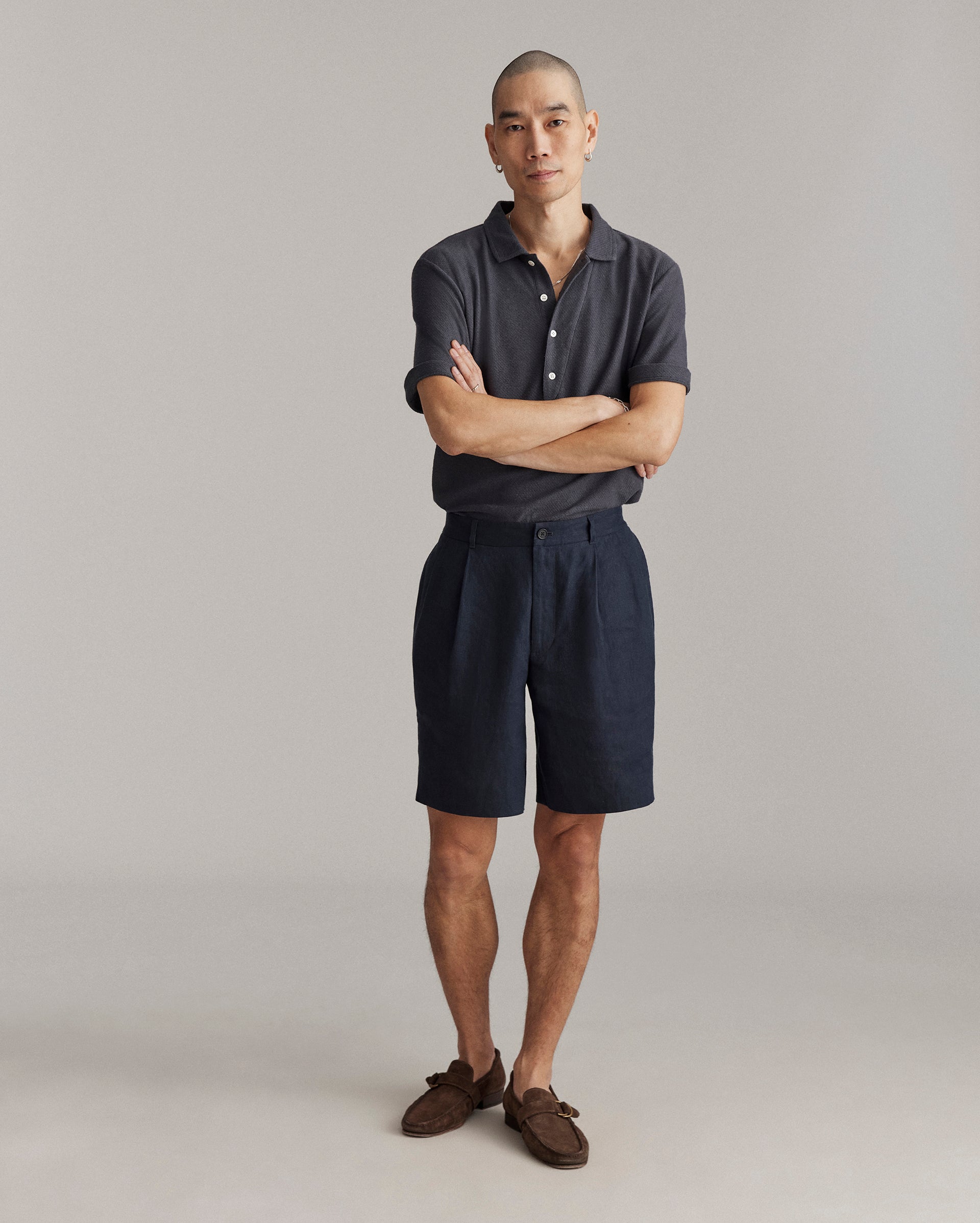 Years ago, Billy took an old pair of dress trousers and cut them off to create a more elevated looking pair of shorts—which inspired this unique style today. The result is a short that has a more polished, tailored look with double pleats reminiscent of 80s style. The wider fit and elevated cut makes these perfect to give just a little more refinement to a casual outfit this summer.Â