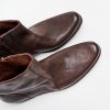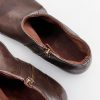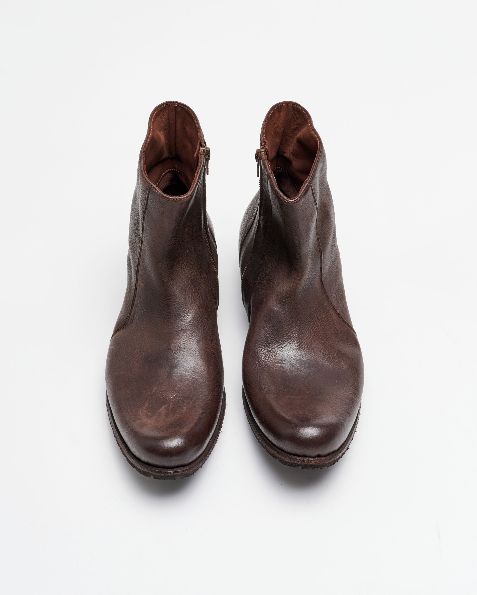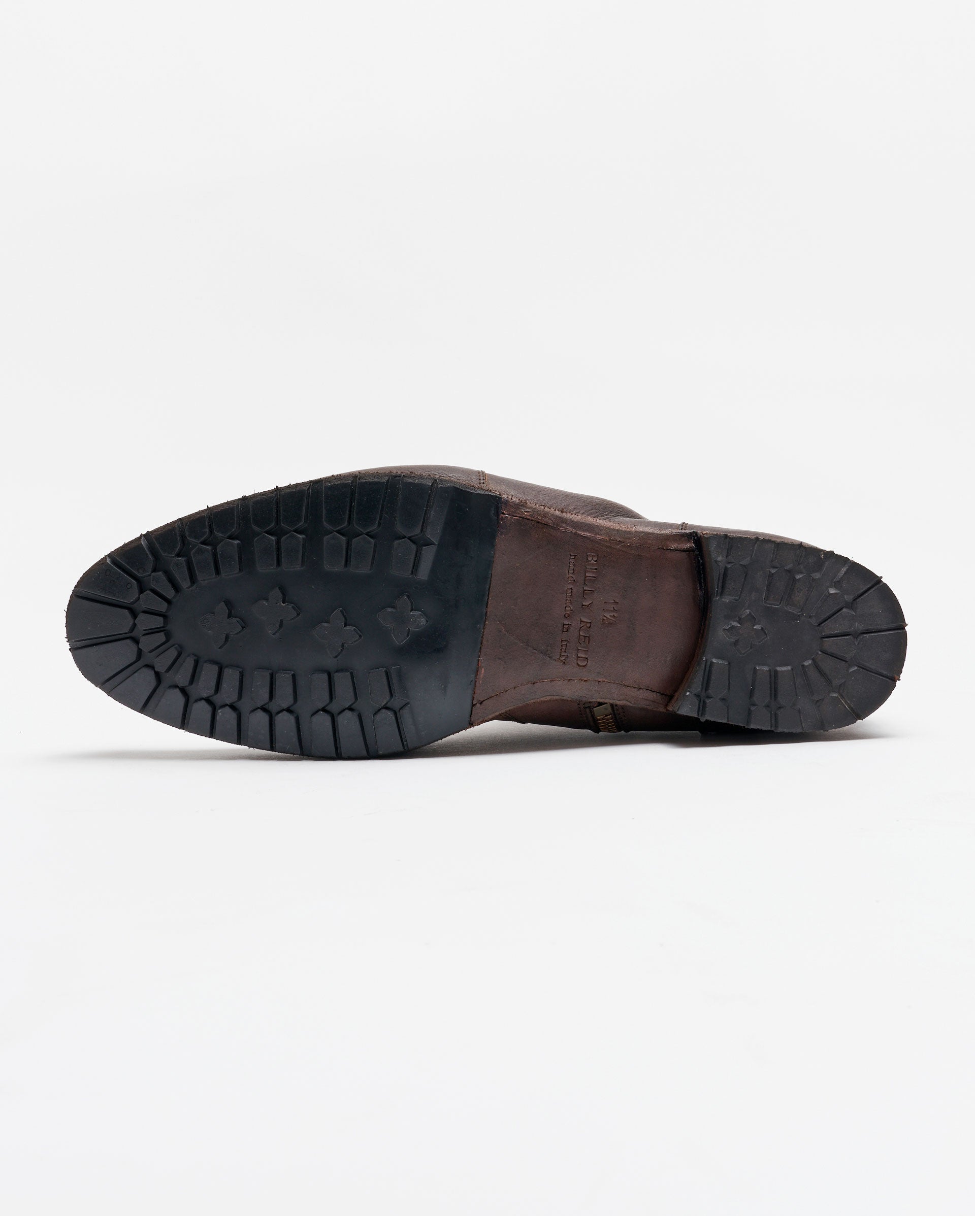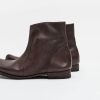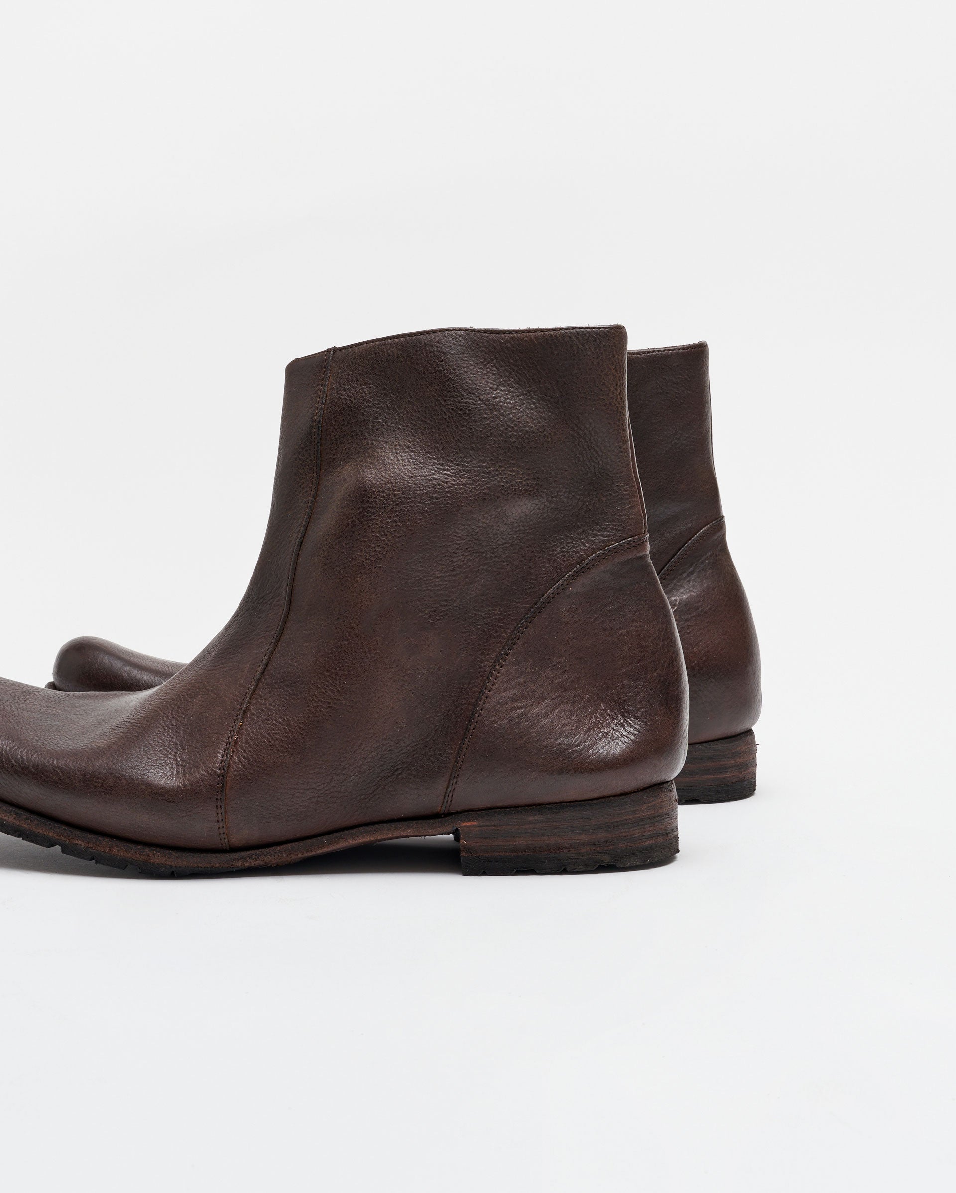 The Paglia Moto Boot is a durable and timeless boot handcrafted in Italy. The upper is fully lined and constructed from a beautiful pebbled cowhide, overdyed in a handsome, rich brown that will break in effortlessly, and finished with a burnished toe cap for a lived-in look and feel. The side zip closure features an antique brass zipper and antique brass zipper pull branded with our signature heirloom ribbon stripe. The soles are soft but durable half-lugged soles with a leather insole that will mold to the shape of your foot over time. This boot, although tough, has a beautifully sleek profile that gives an elevated take on a classic moto style – providing the utmost versatility and wearability. It’s a beloved piece we’re excited to bring back from our archive. The Paglia Moto Boot is crafted with an Italian