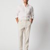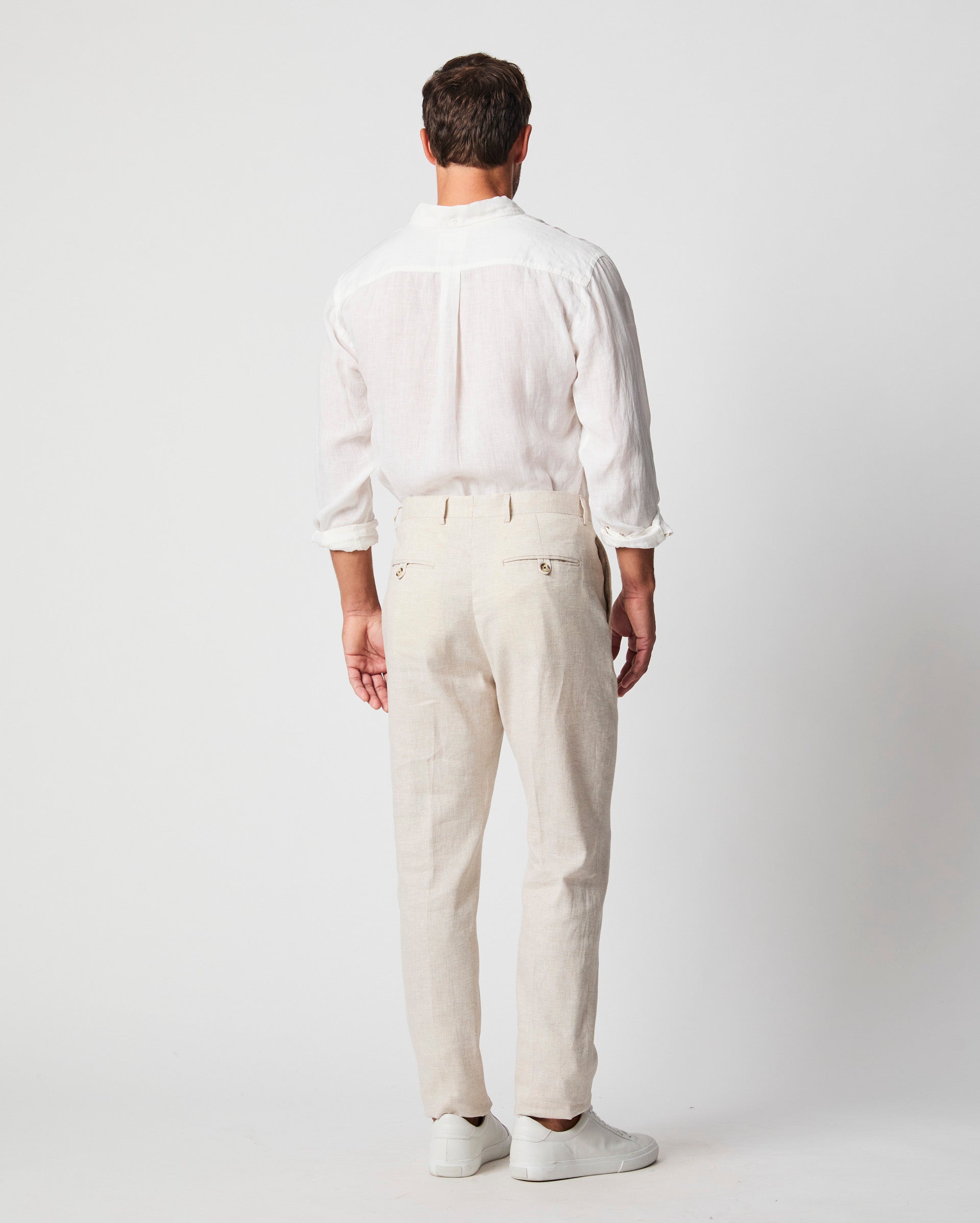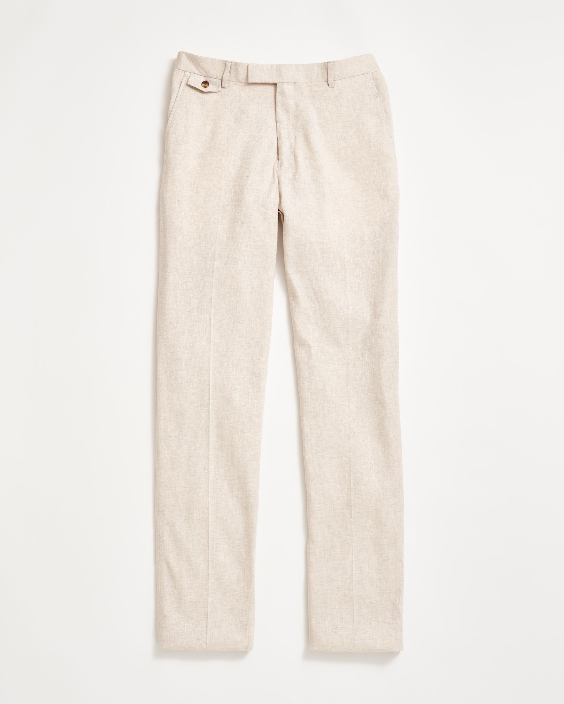Our Herringbone Flat Front Trouser, crafted in Italy, is a slim-fit trouser constructed from a lightweight cotton-linen in a subtle, timeless micro herringbone – a fabrication that wears effortlessly all year long. It features two front slash pockets, one waistband watch pocket with a button flap, two rear welt pockets with button tabs, belt loops on the waistband, and our heirloom ribbon stripe detailing on the interior waistband for a subtle signature detail. Pair the Flat Front Trouser with its matching Archie Jacket for a complete look.
