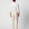 This trouser is slim fit through the hip and thigh with a slim leg. Size up for a more relaxed fit. Fully customizable fit when working with a tailor.Model is 6’2″ wearing size 32.