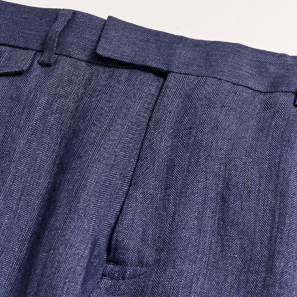 Billy Reid Men’s Herringbone Flat Front Trouser | Navy