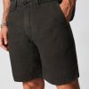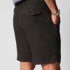This short is mid-rise and slim through the hip. Model is 6’2″ wearing size 32.