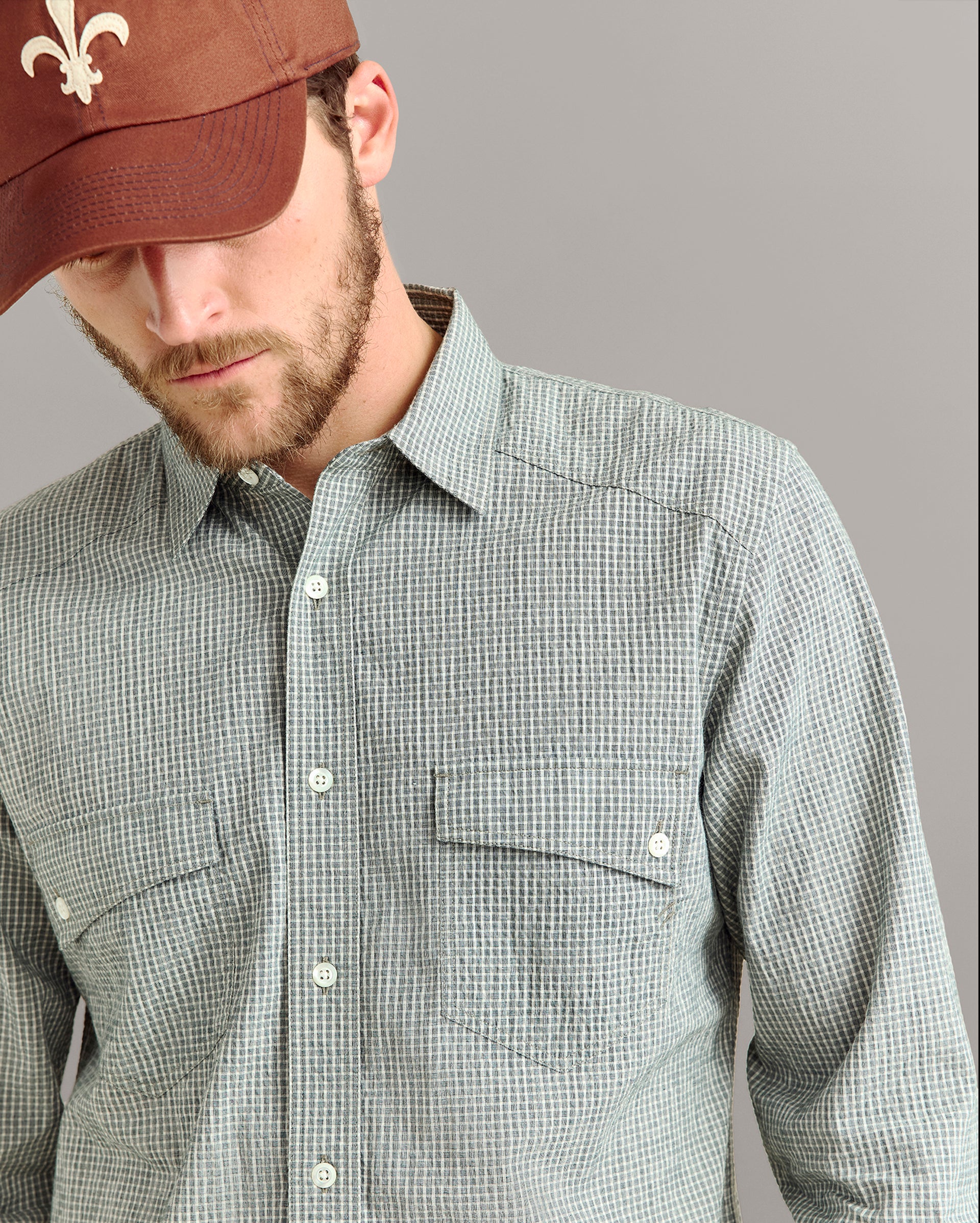This seersucker style was crafted with warm, sunny days in mind. We’ve taken the summer fabric and created a new body that looks reminiscent of a western-style shirt. The result is a piece with all our classic touches. The custom Billy Reid micro-check pattern is topped with mother of pearl buttons and a tonal weave throughout the body. It’s a shirt that layers under a blazer or looks great worn on its own.