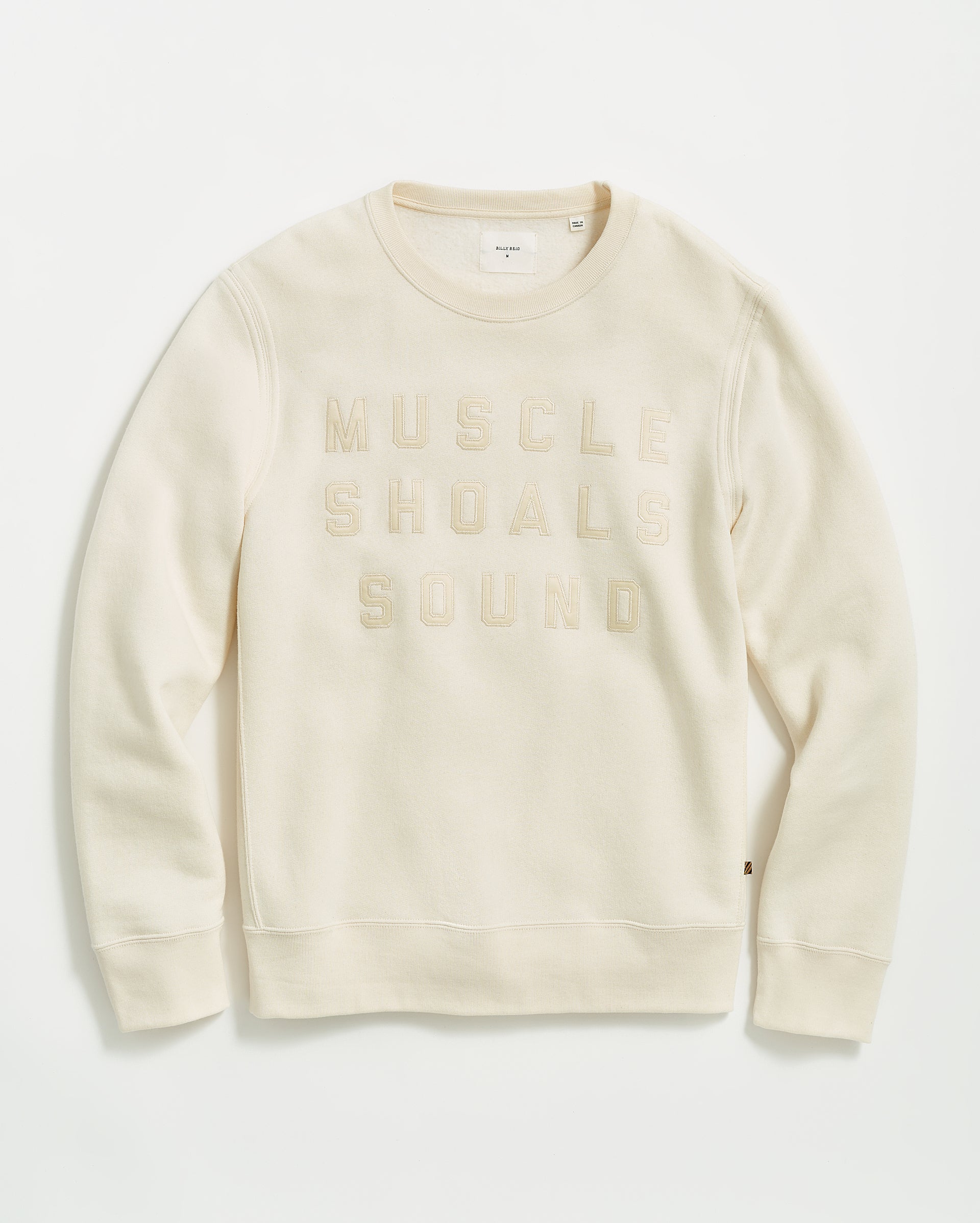 The legendary Muscle Shoals Sound Studio, home to recordings by the likes of The Rolling Stones, Cher, and Bob Dylan, isn’t just our neighbor, it’s a constant source of inspiration. This exclusive crewneck sweatshirt pays homage to that legacy, and it also gives back. For every sweatshirt purchased, 10% of net proceeds will be donated to the Muscle Shoals Music Foundation, a nonprofit organization devoted to preserving the studio.