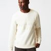 This sweater is a standard fit. Model is 6’2″ wearing size medium.