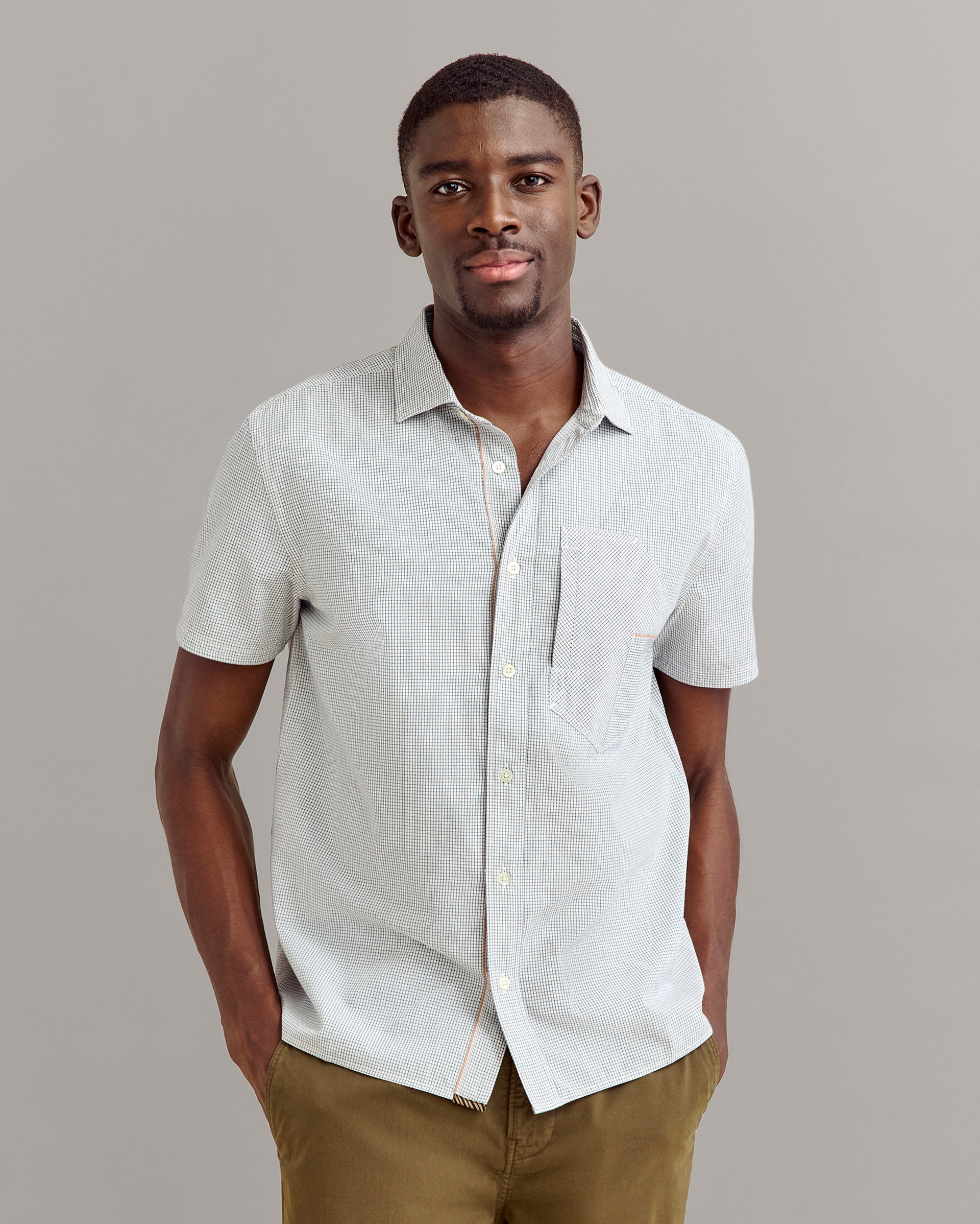 This new style is based on one of our favorite pieces from the Billy Reid archives. The inspiration comes from mid-century mechanics’ work shirts, reimagined in a luxe, 100% cotton structure that feels lightweight and perfect for hot summer days. It’s built as a looser version of our icon MSL 1-pocket shirt, featuring the same fabrication and hidden button-down collar.