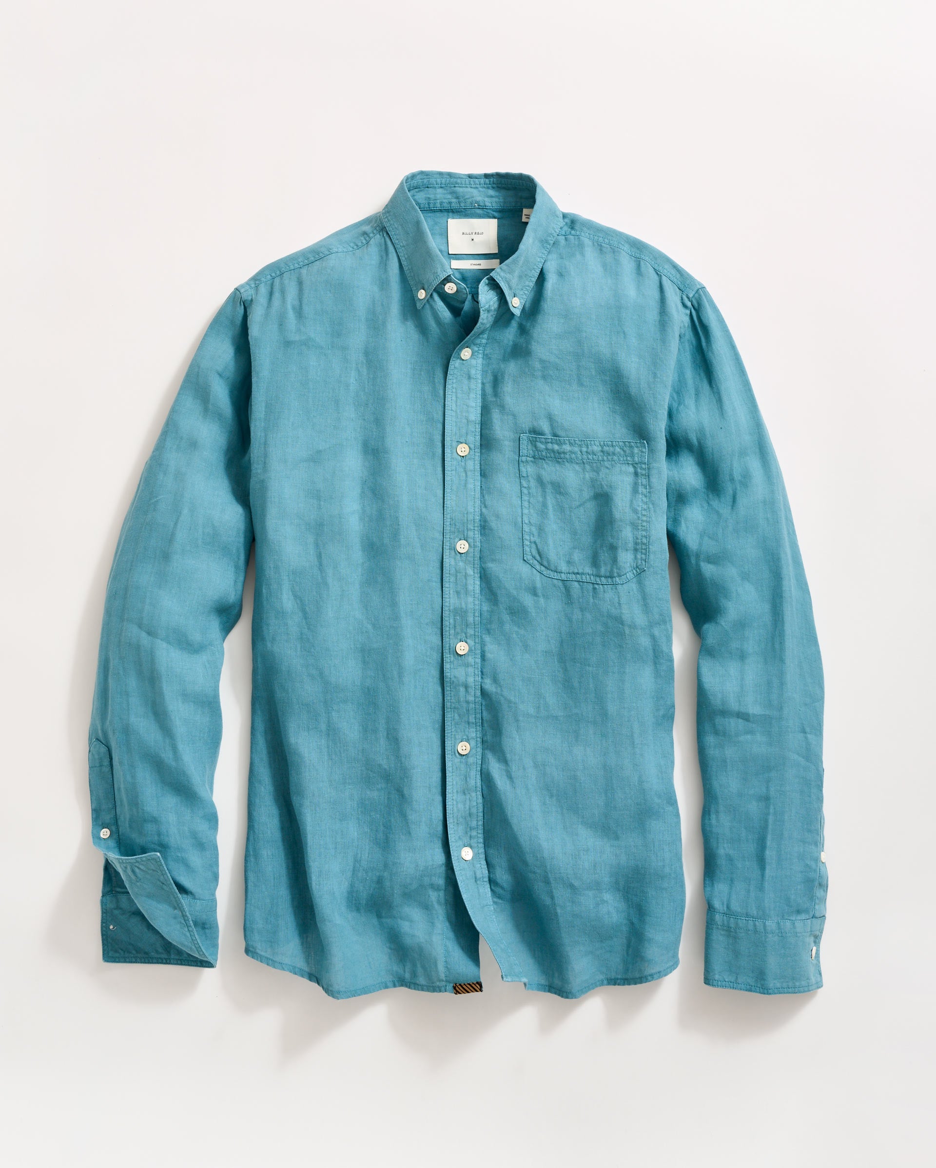 Our best-selling Tuscumbia shirt is the cornerstone of lived in luxury. This version is cut from lightweight linen that has been garment-dyed for an effortless, lived-in look and feel. It’s constructed in a standard fit and features a button-down collar, our signature notch pocket with double-needle stitching, and a box-pleated body. Thoughtfully finished with genuine mother-of-pearl buttons and a subtle detail: our heirloom ribbon applied to the bottom of the under placket.
