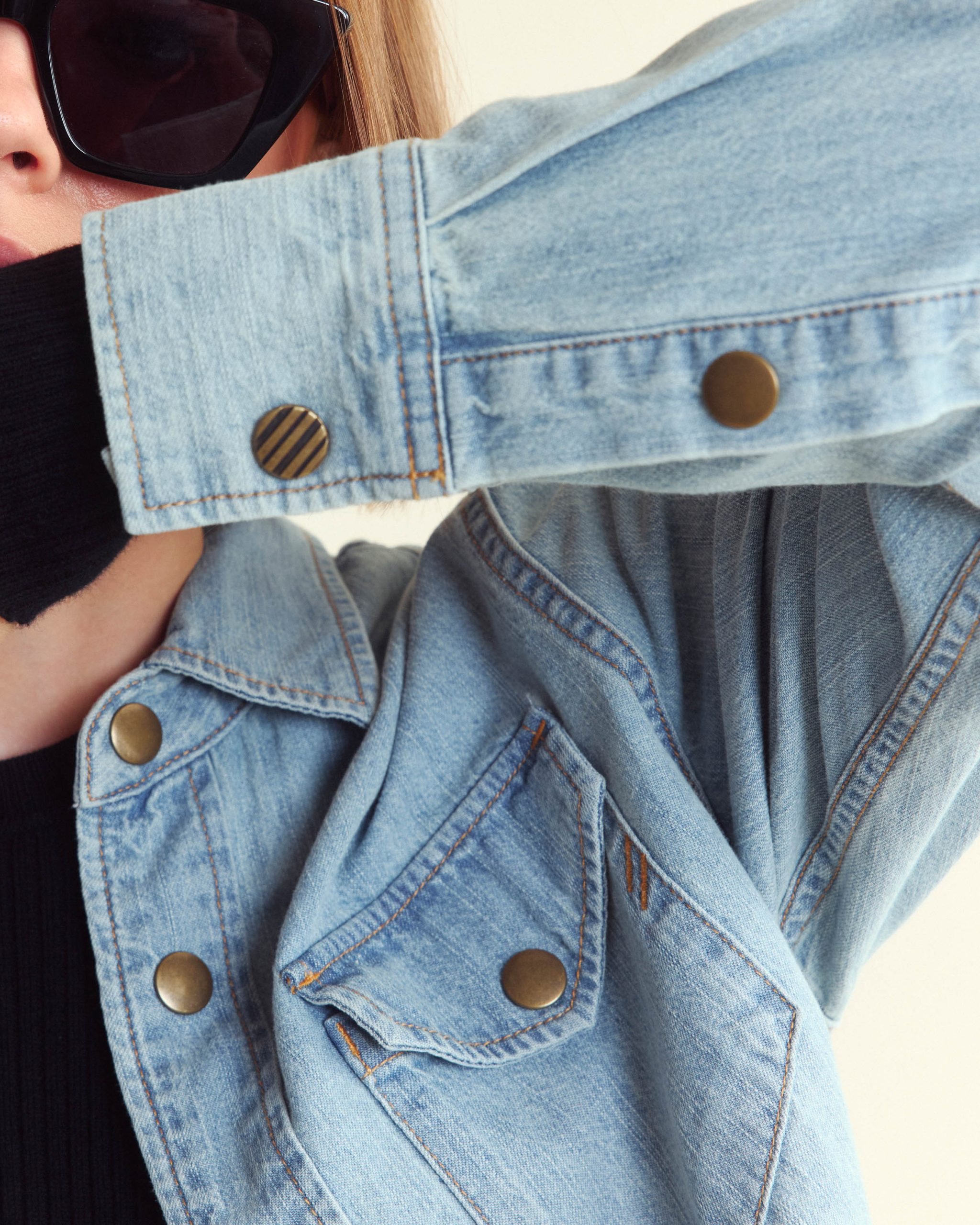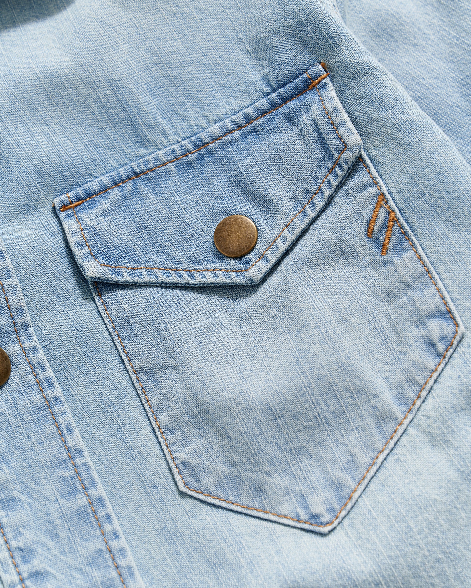 Inspired by our iconic Shoals Denim Shirt, this shirt offers the same authentic details (like a workwear-inspired wash and antique brass snaps) but in a more feminine silhouette. Dress it up with a jacket or a skirt, or wear it as an elevated layering piece over your favorite tee.